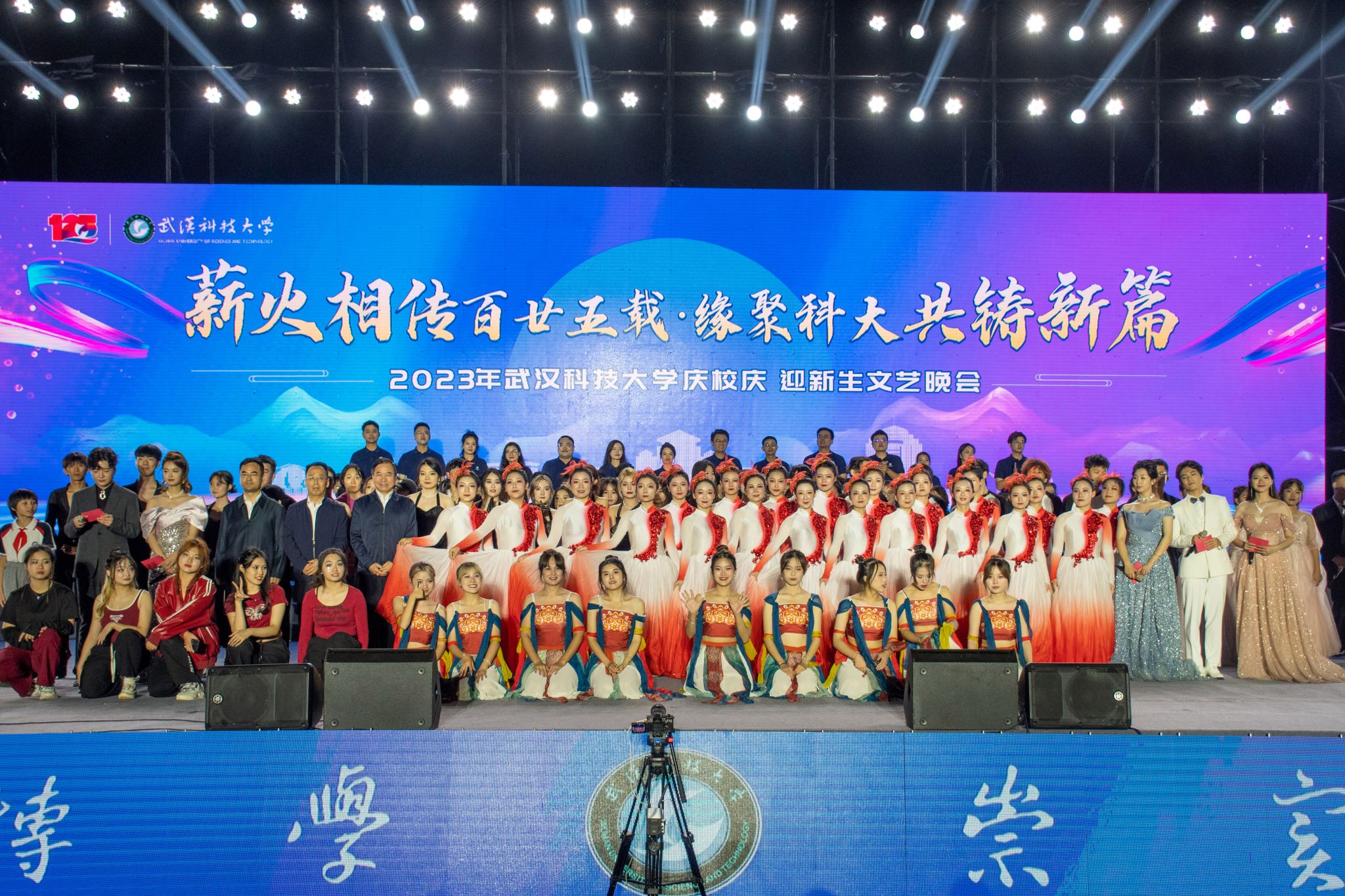 武科大网讯(见习记者黄宏杰 通讯员童思琦 )薪火相传百廿五载,缘聚科大共铸新篇。10月14日晚,我校在黄家湖校区南园操场举办2023年“庆校庆、迎新生”文艺晚会,校党委副书记孙国胜、副校长马腾、党委常委胡剑及学校各职能部门负责人出席晚会。