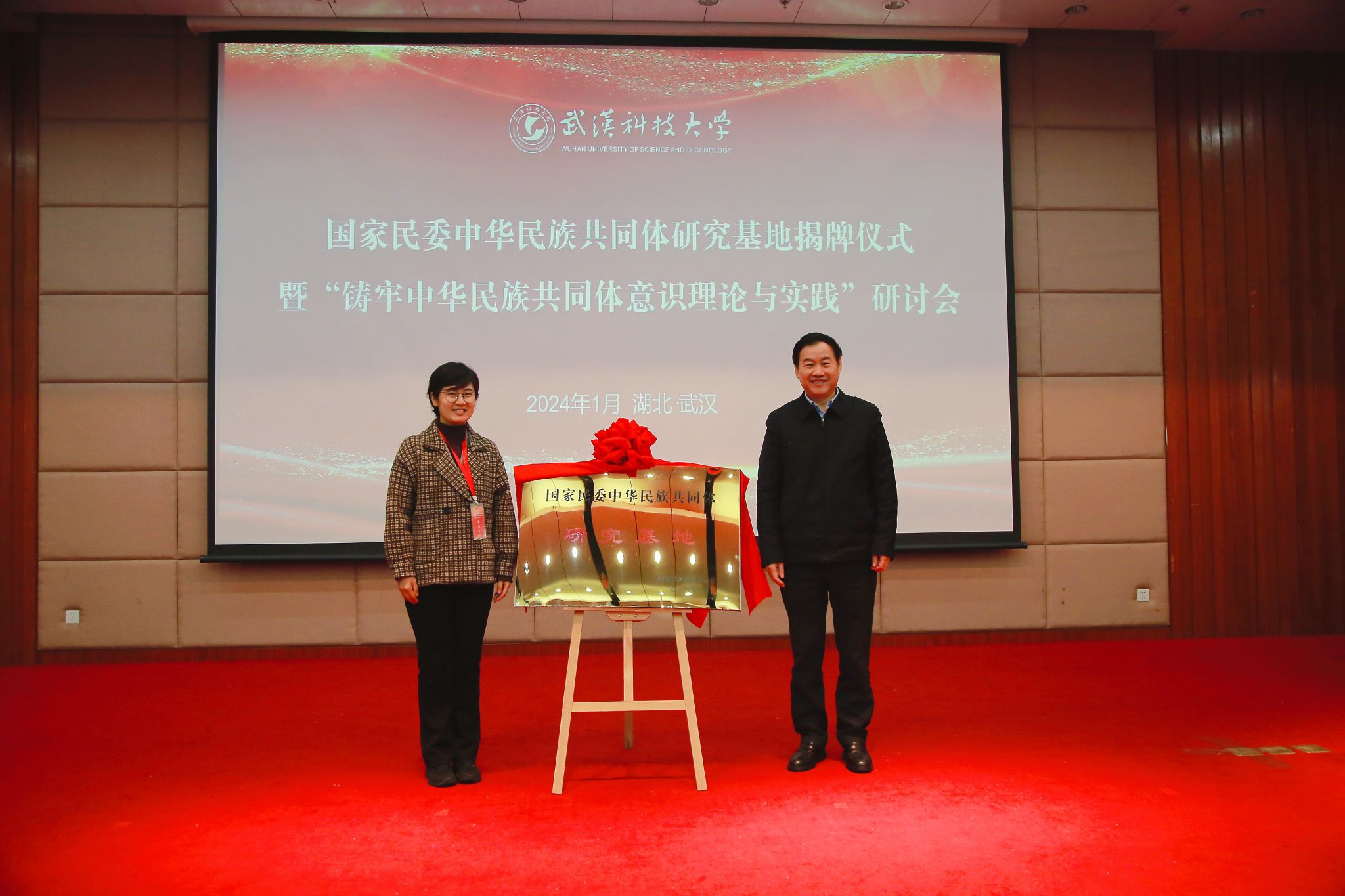武科大网讯(通讯员何金 摄影李芳 金如梦)1月19日,“国家民委中华民族共同体研究基地揭牌仪式暨‘铸牢中华民族共同体意识理论与实践’”研讨会在我校黄家湖校区举行。校党委书记徐雁冰出席开幕式并为研究基地揭牌,校党委副书记孙国胜出席开幕式并致辞。开幕式由法学与经济学院院长袁年兴主持。