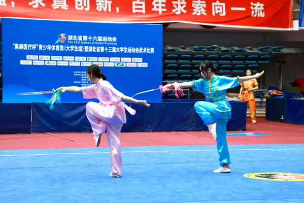 武科大网讯(通讯员田春花 陶紫)4月15日,湖北省第十六届运动会青少年体育类(大学生组)武术竞赛在三峡大学大学生体育馆圆满结束。我校武术代表队获得一枚金牌、两枚铜牌、两项第五名。