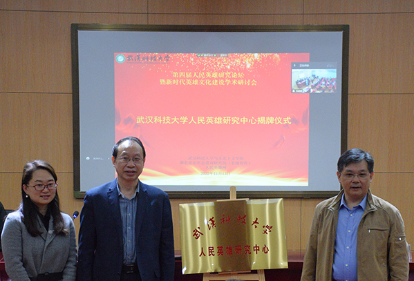 潘婧与我校马克思主义学院书记、湖北意识形态建设研究院院长唐忠义教授一同为beat365唯一官网人民英雄研究中心揭牌。