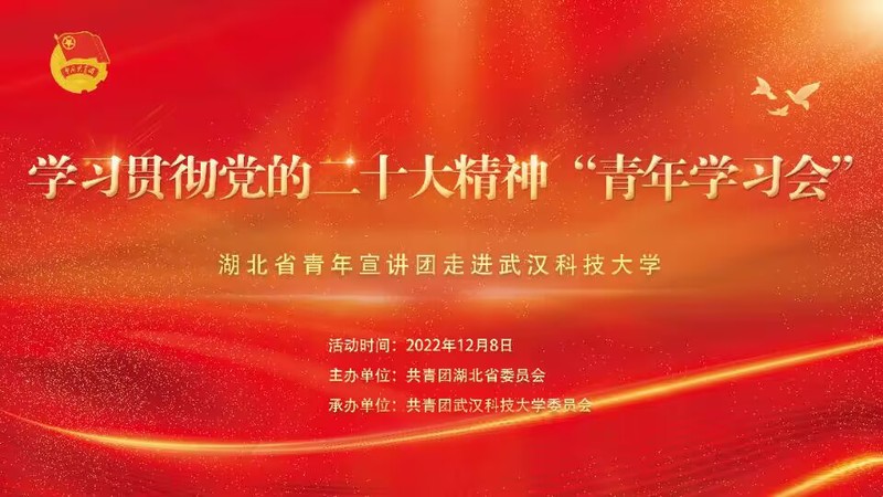 武科大网讯(通讯员赵毅 闫昌昊)12月8日,学习贯彻党的二十大精神“青年学习会”湖北省青年宣讲团走进武科大宣讲活动顺利举办。本次“青年学习会”采用线上方式进行,中国地质大学(武汉)团委书记朱荆萨、国网孝感供电公司团委书记夏凡等省青年宣讲团成员为我校200余名青年学生作报告。省希望工程办公室主任陈琦、校团委书记刘晓云、校团委副书记李宇奇,以及学校各级专兼职团干代表参加学习会。