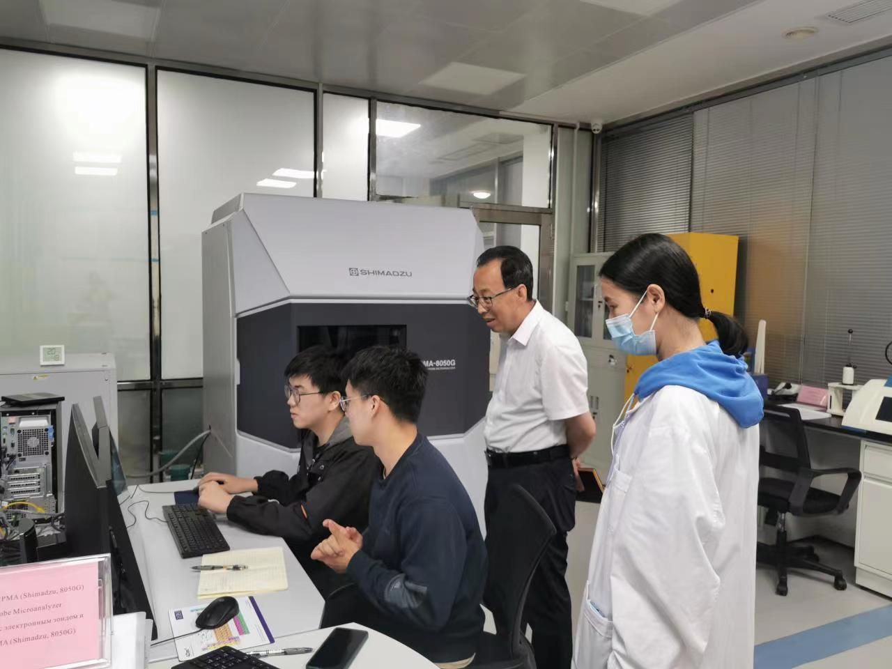 在透射电镜实验室,马腾向李媛媛详细了解了透射电镜的共享情况,鼓励她深耕透射电镜的测试技术与操作技能,继续发挥我校透射电镜在钢铁材料测试方面的优势和特色,使之成为“镇校之宝”,助力学校一流学科建设。