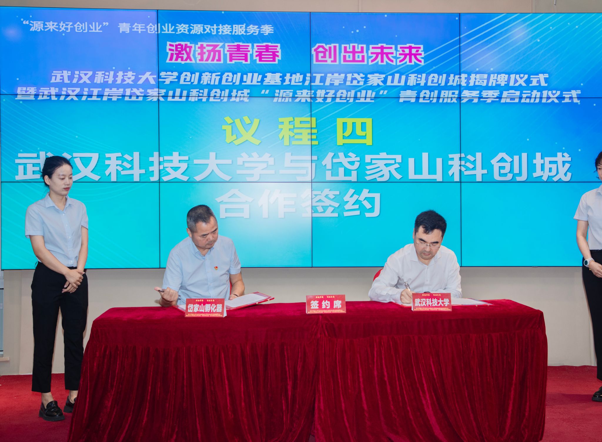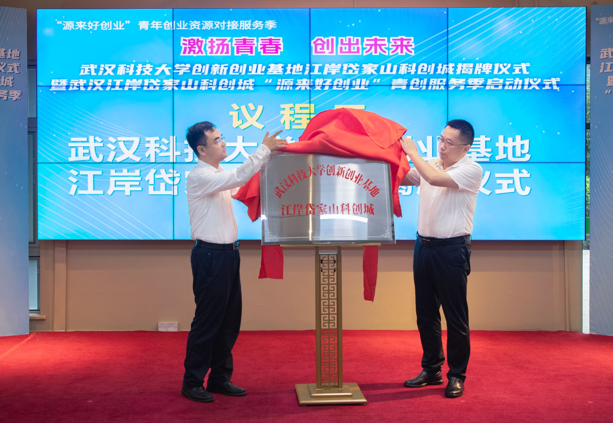 武科大网讯(记者陈孖川)9月20日上午,我校创新创业基地江岸岱家山科创城揭牌成立。校党委常委胡剑与江岸区人民政府副区长胡彦全为beat365唯一官网创新创业基地江岸岱家山科创城揭牌。胡剑与武汉岱家山兴城实业发展有限公司党总支书记严明签订合作协议。双方将在创新创业比赛、实习实训、创新创业项目孵化、科技成果转化等方面开展系列合作。