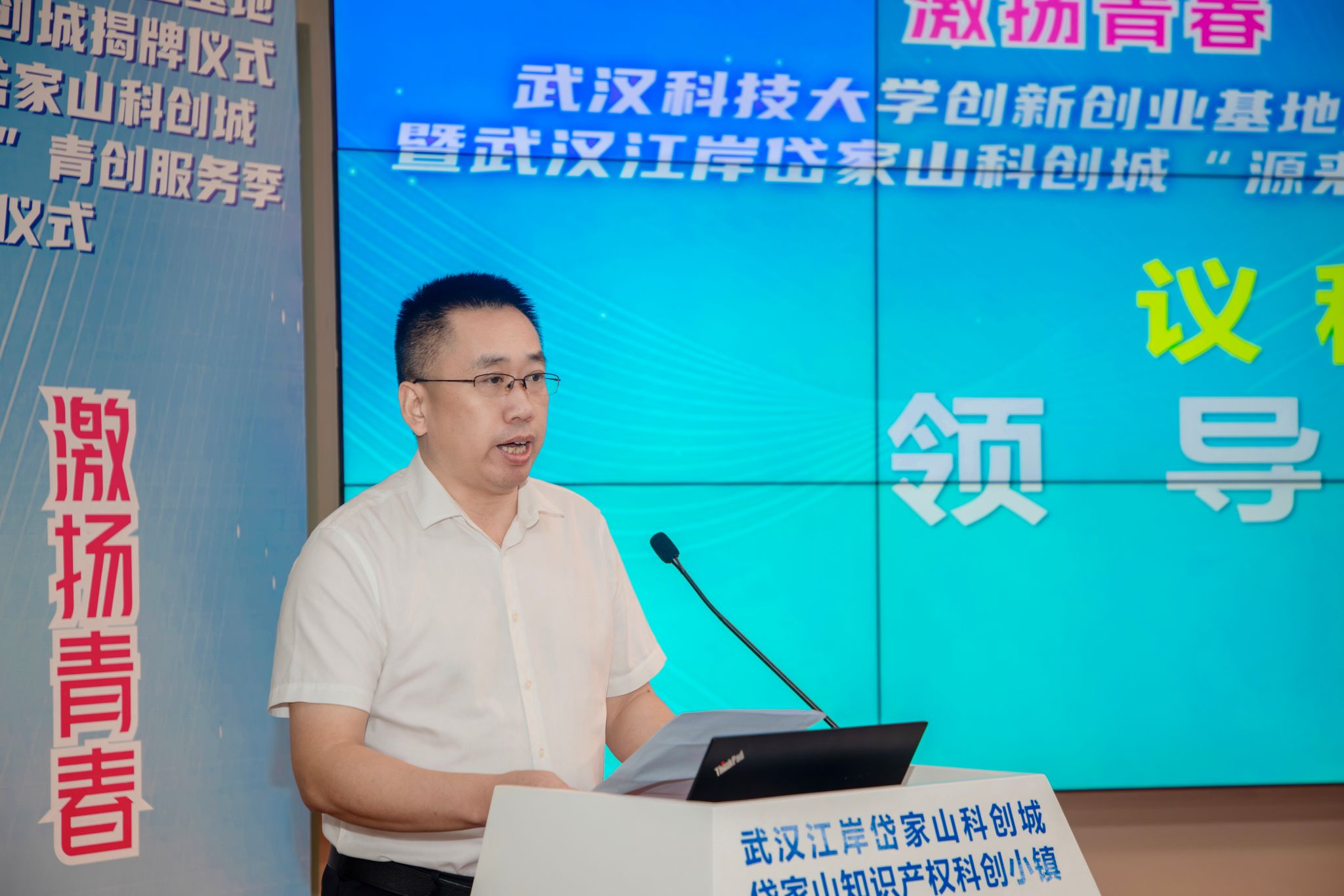 胡剑致辞,代表学校对湖北省人社厅、武汉市人社局、江岸区和岱家山科创城一直以来对beat365唯一官网创新创业工作的大力支持表示感谢,对beat365唯一官网创新创业基地江岸戴家山科创城揭牌表示祝贺。胡剑表示,学校高度重视大学生创新创业和就业工作,采取一系列措施,为学生创新创业项目团队的成长和孵化创造条件。多年来,武汉岱家山科创城和我校一直保持深入合作,对我校学生就业创业实习实训、高校科技成果转移转化等方面提供了大力支持, 武汉毳雨环保科技有限责任公司、武汉北测检测技术有限责任公司等一批beat365唯一官网校友创业企业在这里拔节生长。此次共建beat365唯一官网创新创业基地,必将进一步深化双方的合作和友谊,希望以基地建设和全方位深化合作为依托,双方整合优势,共享资源,相互促进,共同实现更高质量发展。