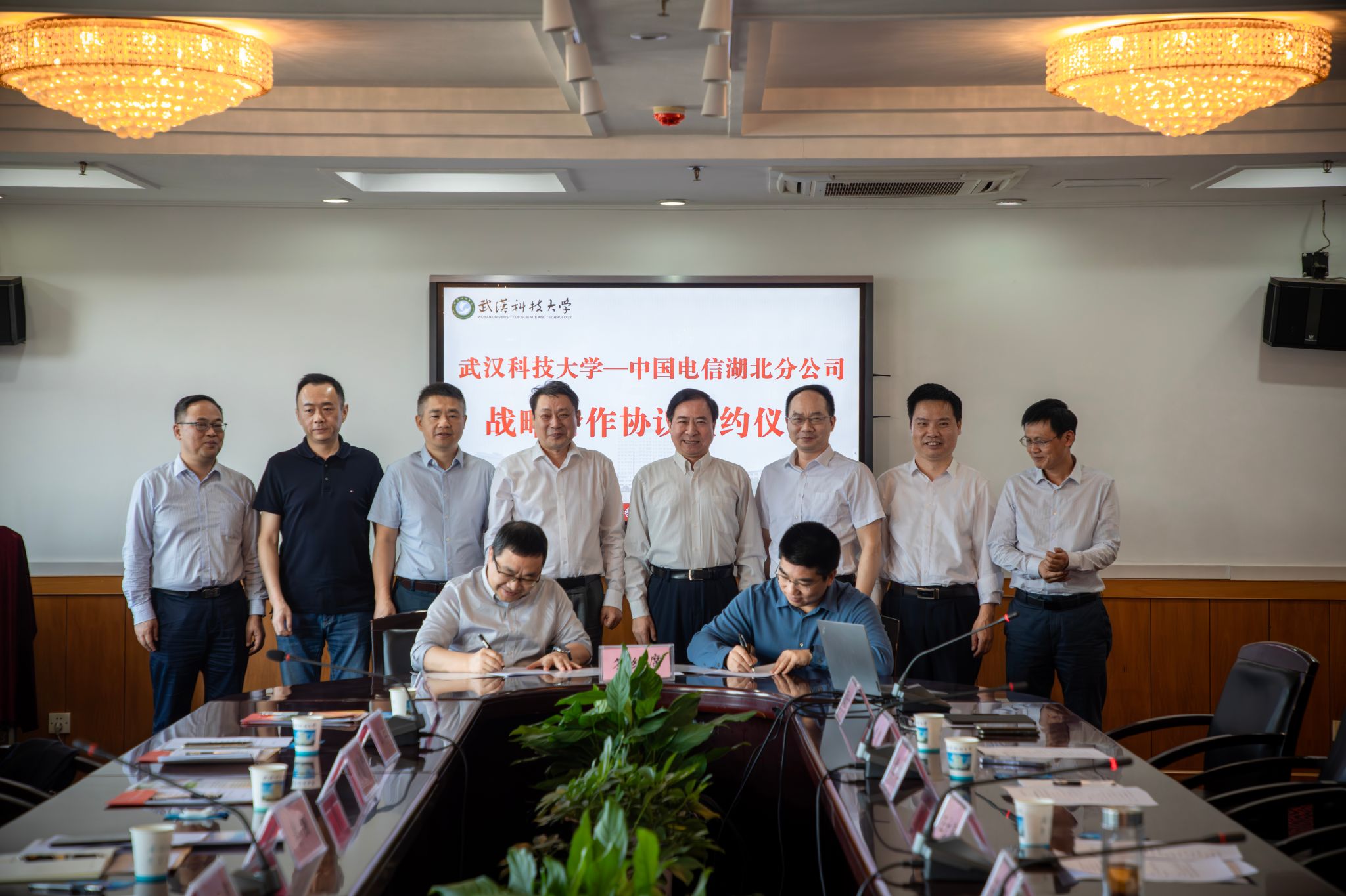湖北电信政企信息服务事业群总经理李强、公众公司总经理周慧中、政企教育行业事业部总经理吴晓斌,武汉电信副总经理覃兵,武汉电信校园客户服务部总经理吴峰、副总经理周强,学校党政办公室、研究生院、科学技术发展院、校友工作与社会合作处、网络信息中心、计算机科学与技术学院负责人参加会议。