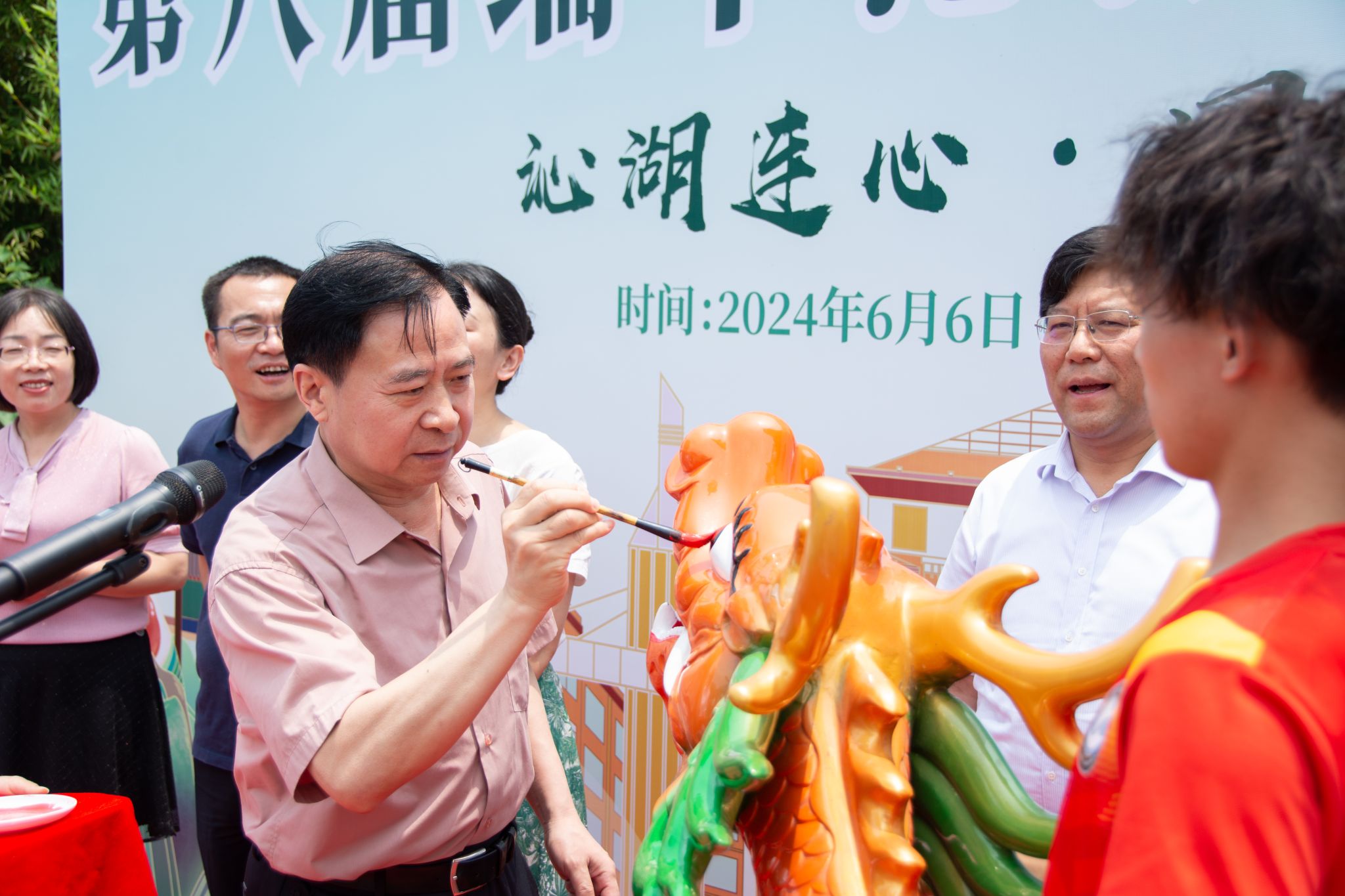 开幕式上,孙国胜为龙舟“点睛”,寓意平安吉祥。团委副书记向方新宣读宣读比赛规则,运动员代表肖博阳宣誓。
