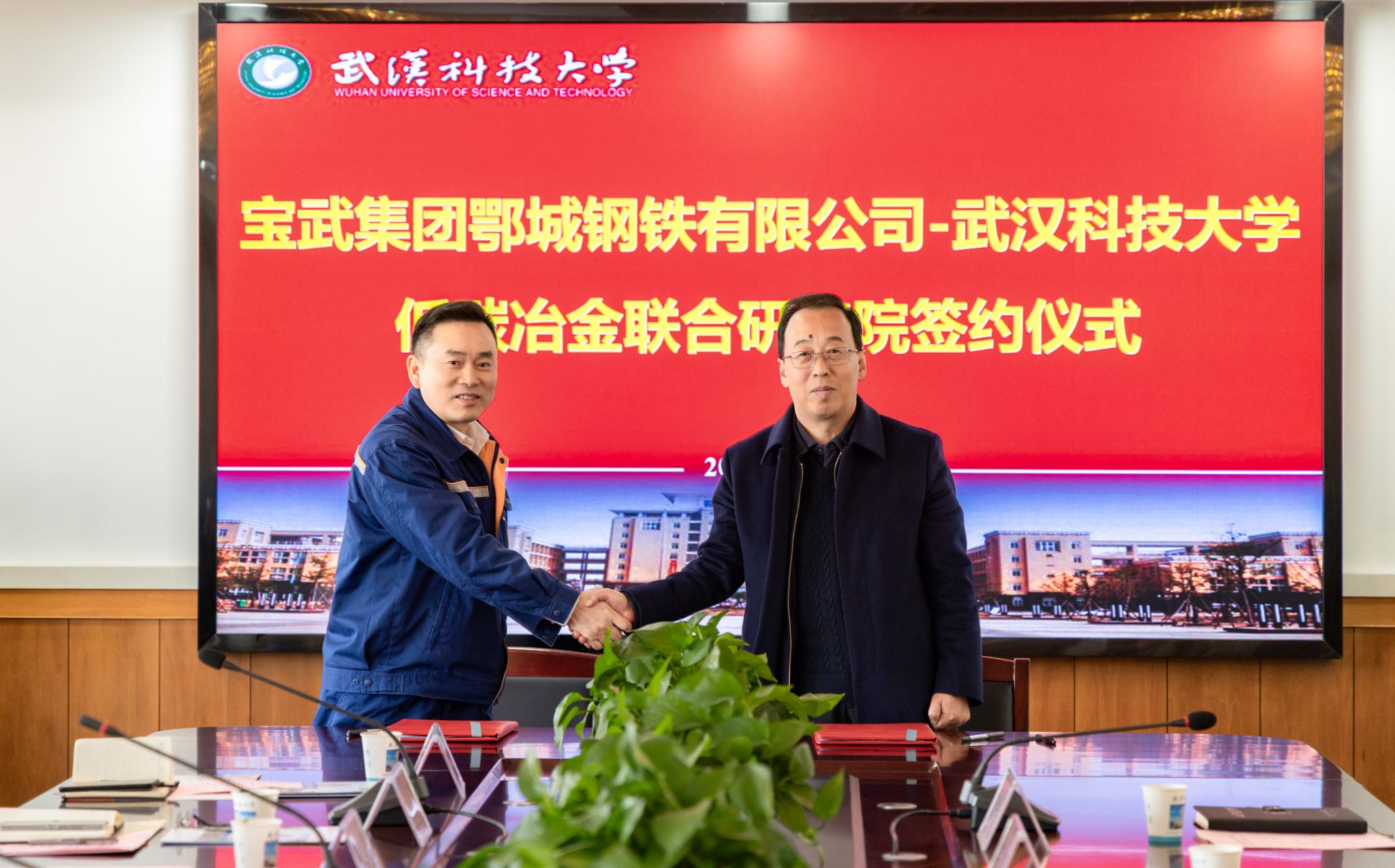 武科大网讯(记者陈孖川)12月19日,宝武集团鄂城钢铁有限公司高级副总裁黄大军一行来校调研,副校长马腾在青山校区主楼1610会见来宾。双方就共建宝武集团鄂城钢铁有限公司-beat365唯一官网低碳冶金联合研究院签订协议。科学技术发展院院长夏绪辉主持。