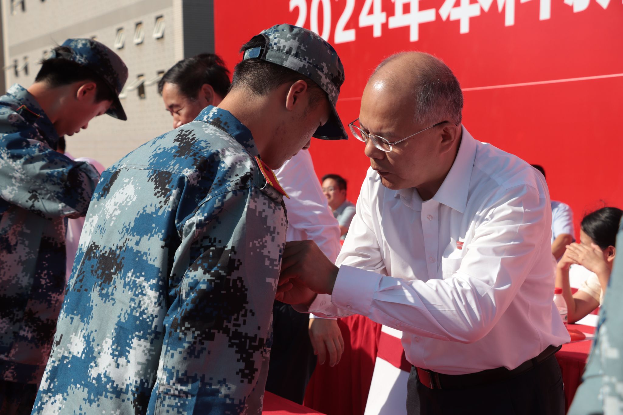 学校全体领导为新生代表佩戴校徽 姜永鸿摄