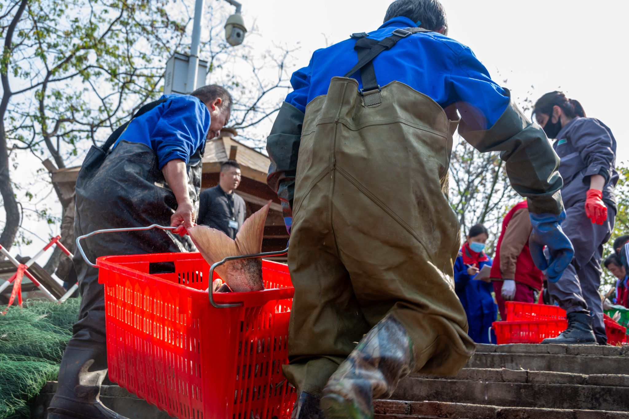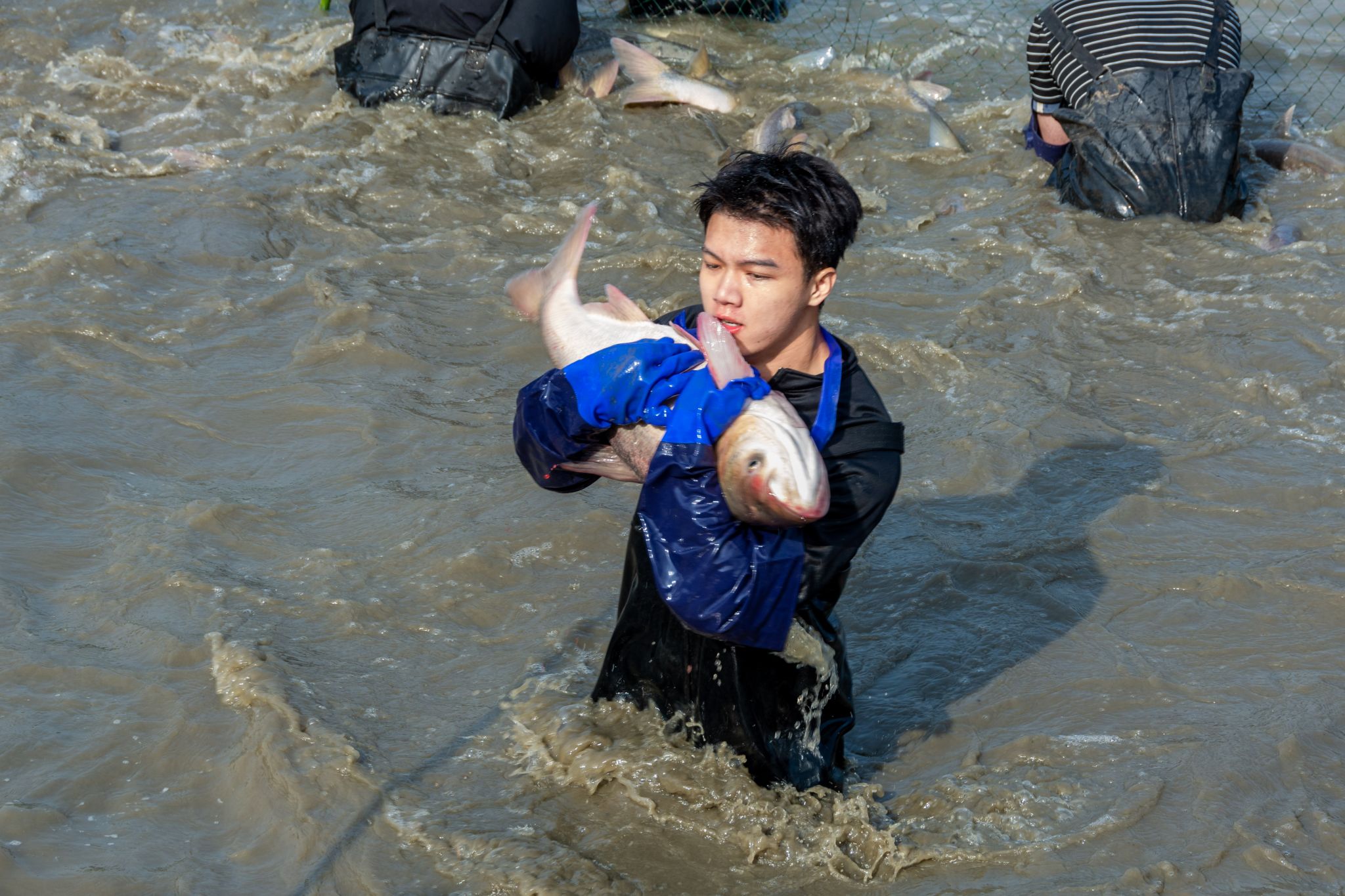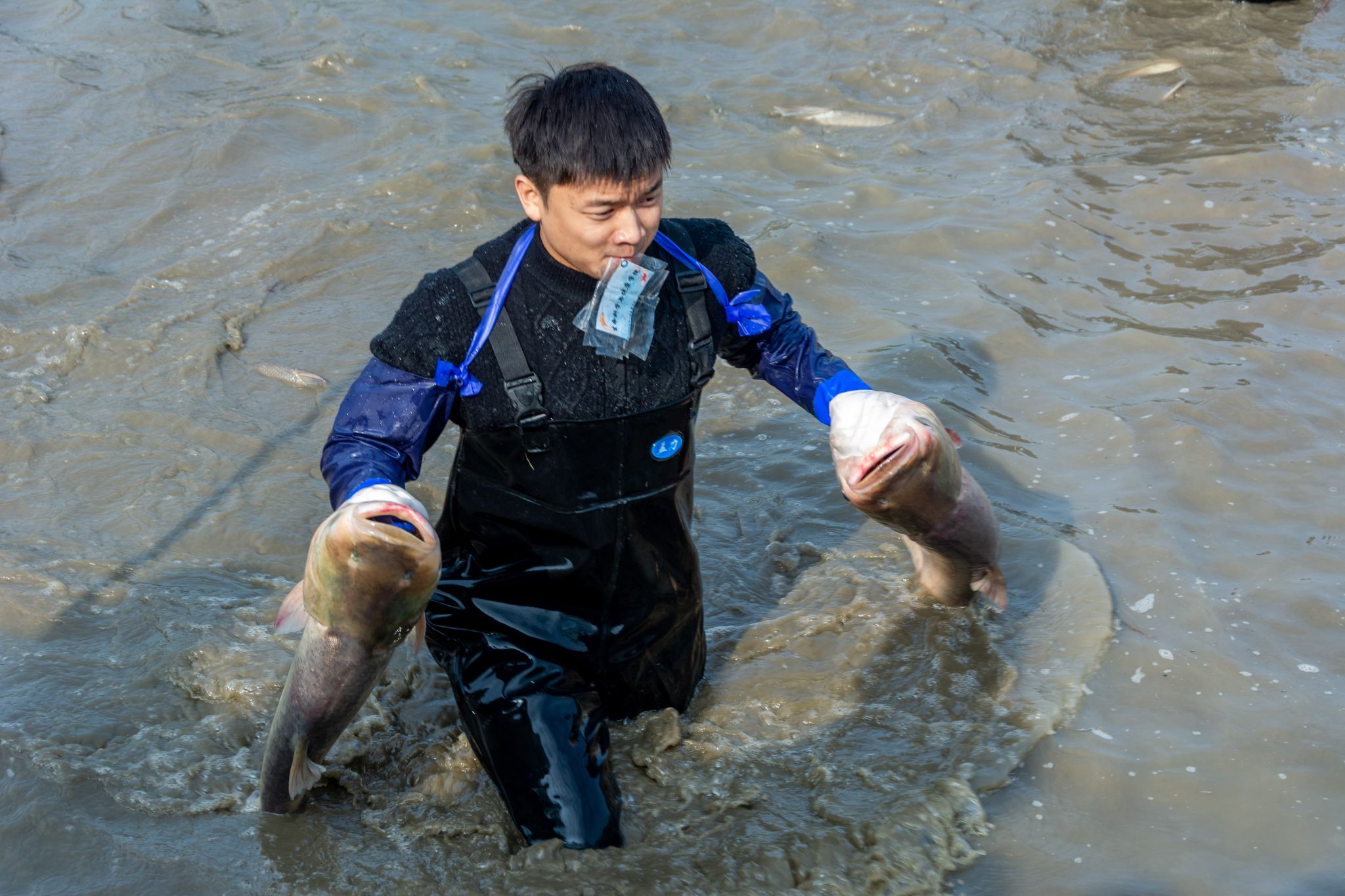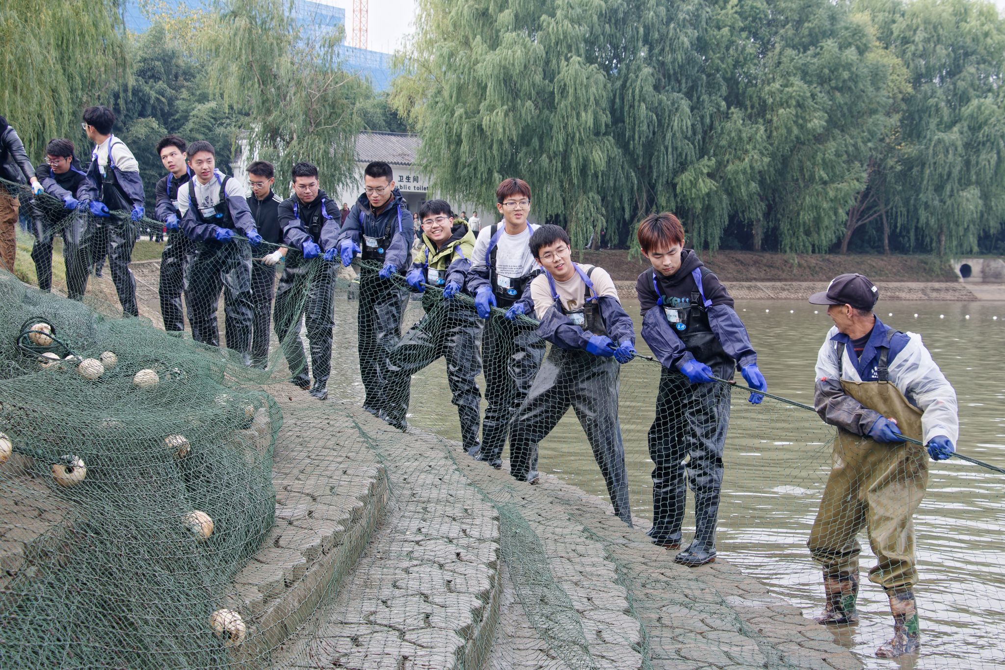 11月21日上午8时,学校近百名中外师生和后勤集团员工身着统一的红色服装,在沁湖边拉开了捕鱼活动的序幕。经过半个多小时的激烈争夺,信息学院徐润收获了一条20.5斤重的大鱼,获得了今年的“捕鱼王”称号。